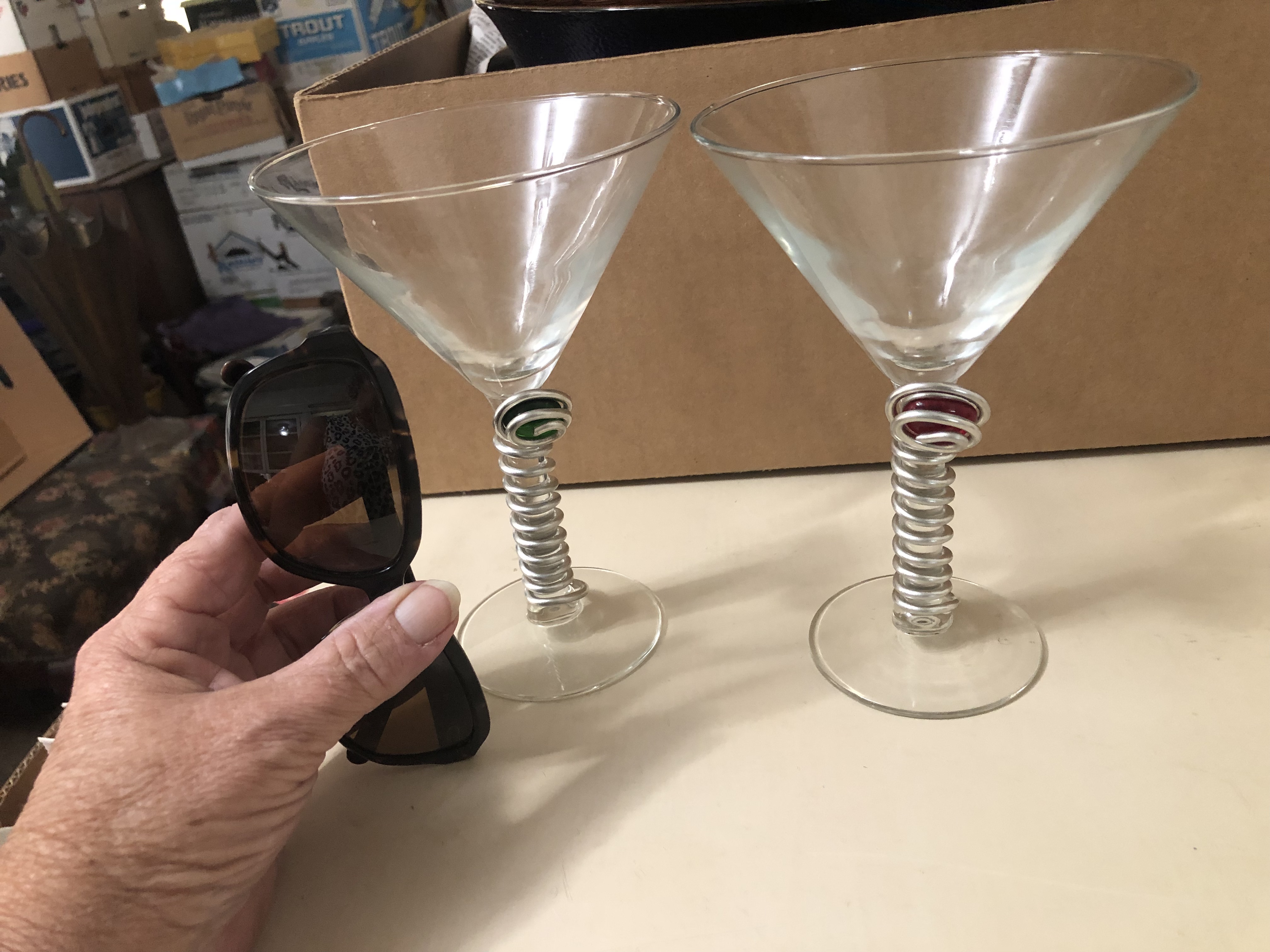 Great look pair of martini glasses. They are in great shape so pretty they make you want to have a martini.