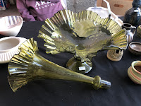 This is a beautiful Fenton glass single horn Epergne vase and is very rare. There are no chips, cracks or repairs.Vase stands approx. 15" tall to the top of the horn, the bottom part of the vase without the horn stands approx. 7 3/4' tall and measures around 12" wide.